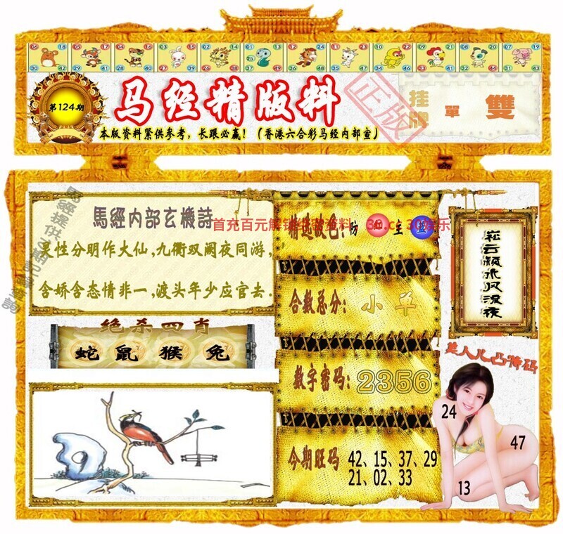 | 124期:必中七肖→狗龙蛇马兔牛虎 |